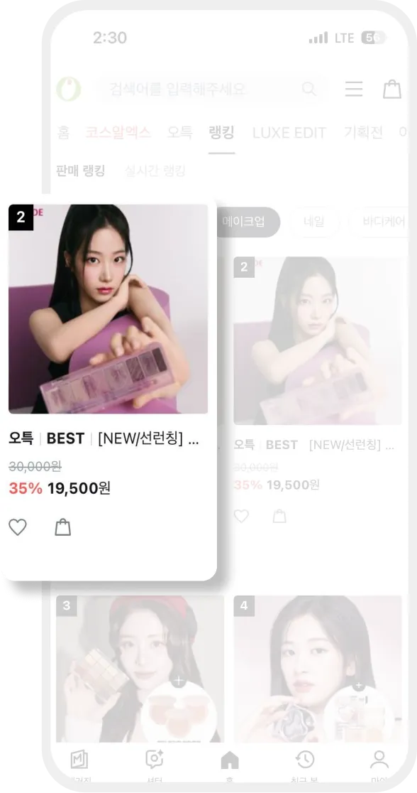 에뛰드는 아이메이크업 새로운 컬러를 출시하며 올리브영에서의 단 6시간 집중 구매를 통해 메이크업 부문 2위, 전체 랭킹 2위, 실시간 view 3위를 달성하였습니다.