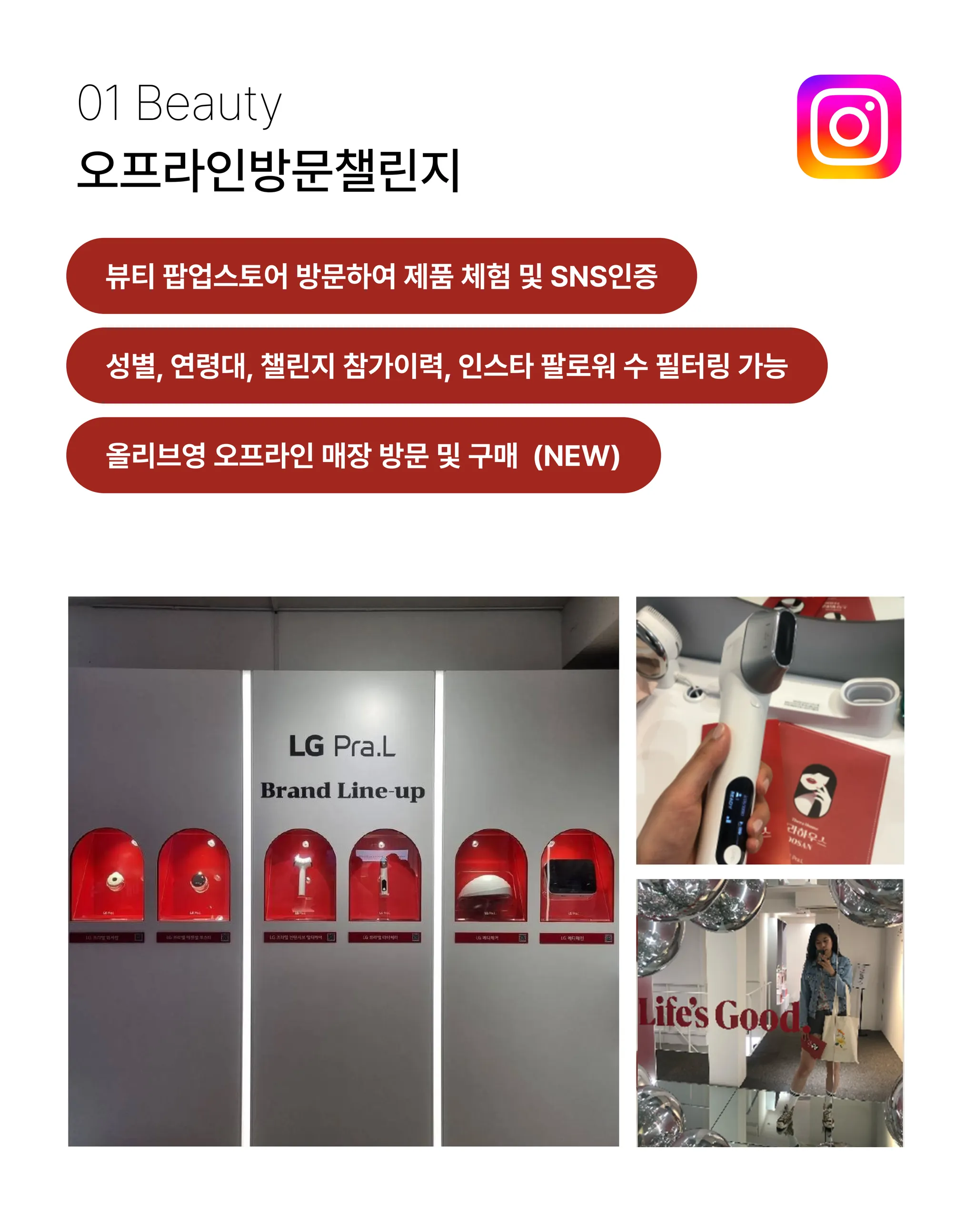 뷰티 팝업스토어 등 오프라인 장소를 방문하여 SNS에 인증하는 챌린지를 진행할 수