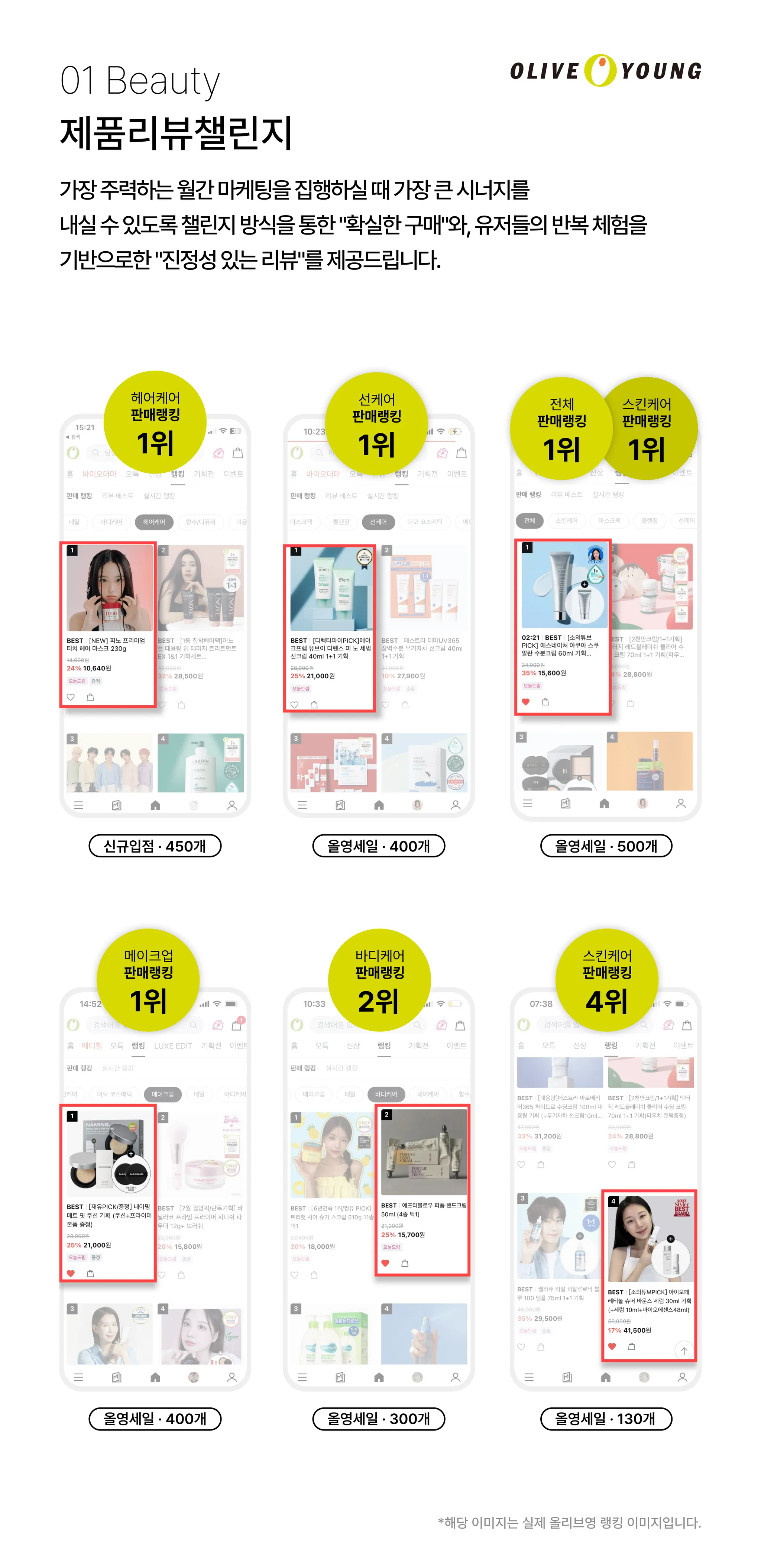 올리브영, 스마트스토어, 카카오 선물하기, 자사몰, 쿠팡, 마켓컬리 등 주력하는 플랫폼에서 지정된 기간에 제품을 구매하고 리뷰를 남기는 챌린지입니다.
